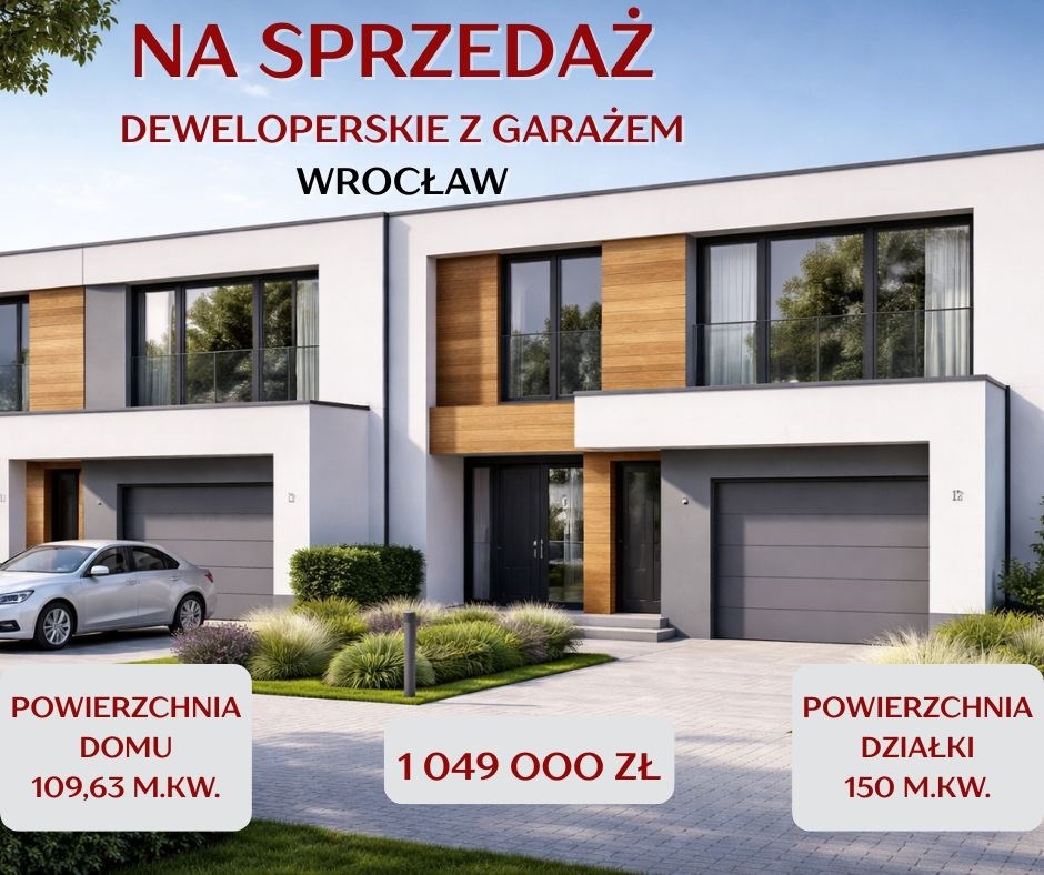 BESTATE Nieruchomości Wrocław oferuje do sprzedaży trzypokojowy dom jednorodzinny w zabudowie segmentowej, o powierzchni 109,63.kw, powierzchnia działki 150 m.kw usytuowany na osiedlu zamkniętym na granicy Wrocławia.