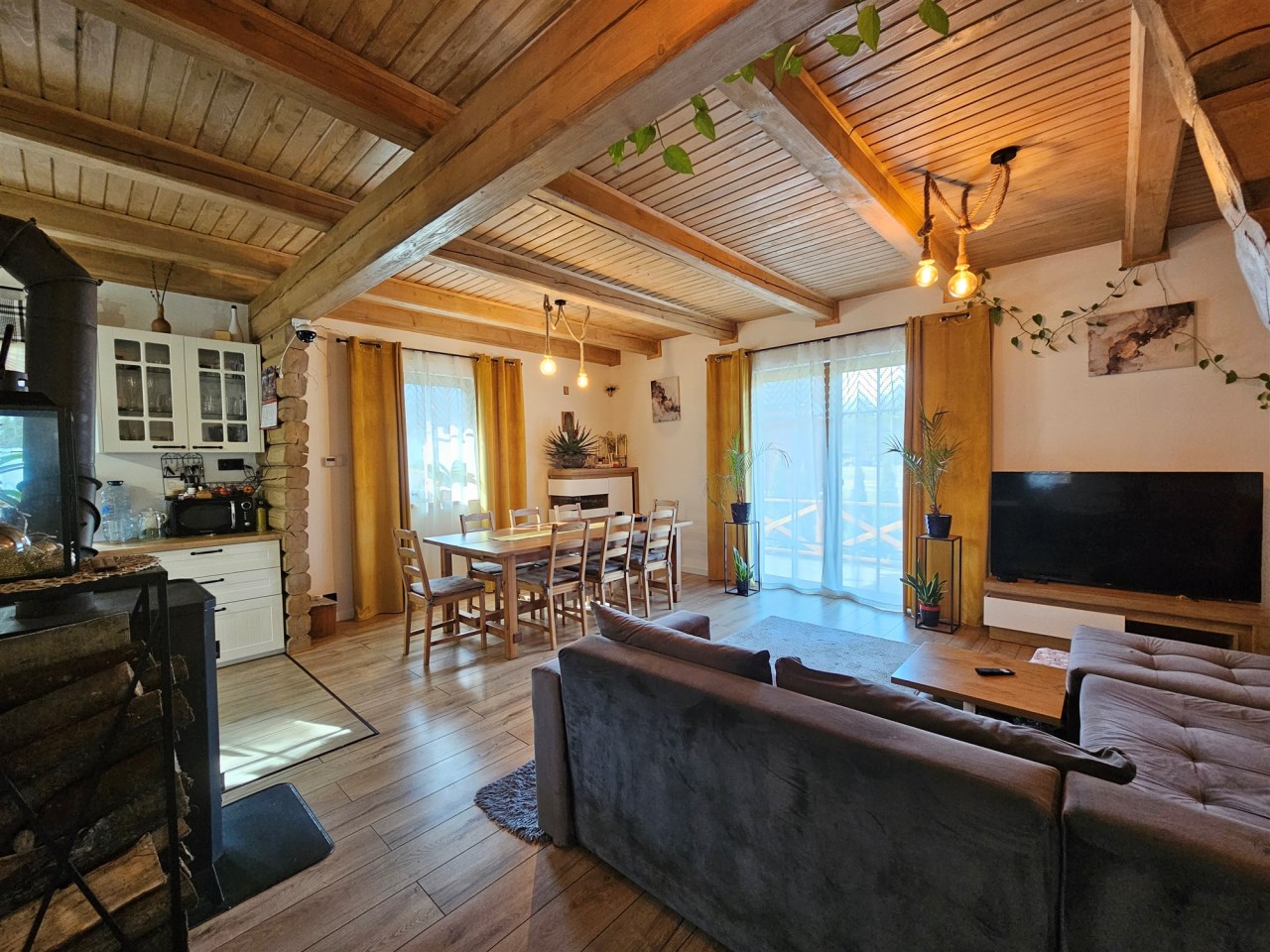 Na sprzedaż klimatyczny drewniany dom o powierzchni ok. 100 m², położony w spokojnej i zielonej miejscowości Trzebunia. Nieruchomość znajduje się na działce o powierzchni 25 arów, z fragmentem własnego lasku oraz dostępem do strumyka.
