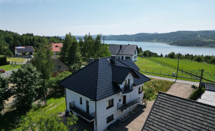 Dom w Borzęcie z widokiem na jezioro Dobczyckie.
