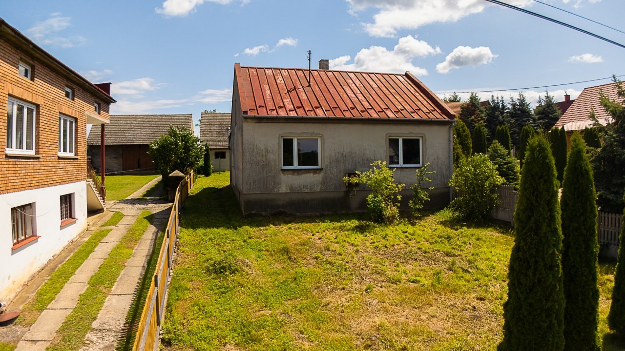 Dom mieszkalny – parterowy, częściowo podpiwniczony, o powierzchni użytkowej 81,7 m² (zabudowy: 110 m²).
