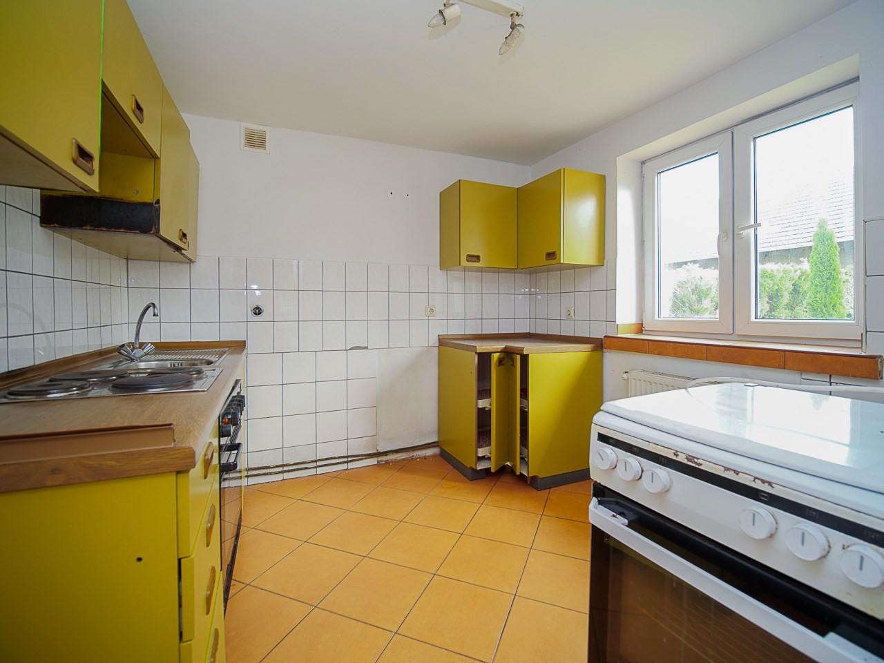 Układ pomieszczeń: 3 pokoje, kuchnia, ganek, korytarz, łazienka i WC.