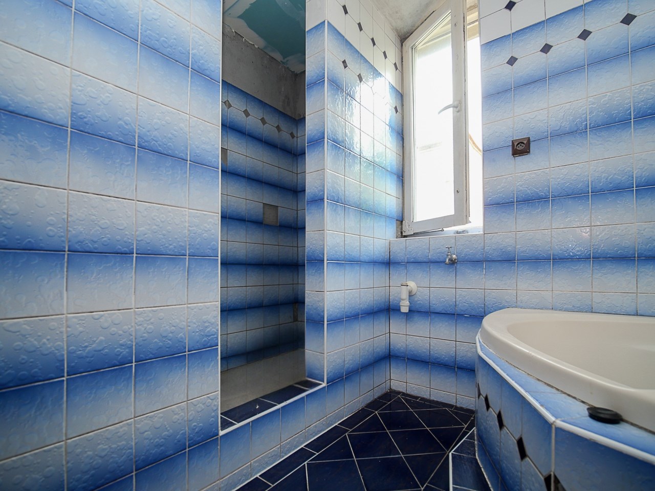 Łazienka i WC po remoncie z lat 90-tych – wyposażone w wannę, prysznic i umywalkę.