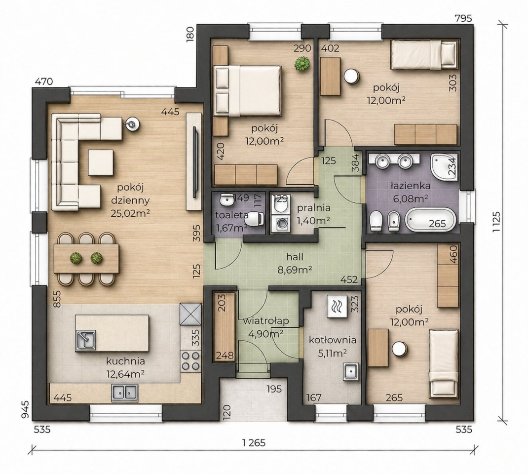 Na sprzedaż funkcjonalny i energooszczędny dom parterowy, wybudowany według projektu „Przy Rubinowej 14” o powierzchni 95 m² – idealna propozycja dla osób ceniących komfort, ekonomię użytkowania oraz spokojną lokalizację w otoczeniu natury. Nieruchomość zlokalizowana jest w Łęgu Tarnowskim - około 10 km od ścisłego centrum Tarnowa. W bezpośrednim sąsiedztwie nowa, estetyczna zabudowa jednorodzinna, oraz las sosnowy - co gwarantuje spójny charakter okolicy oraz komfortowe warunki do życia. Dom został zaprojektowany jako budynek parterowy z symetrycznym dachem kopertowym, co przekłada się na jego nowoczesny, ponadczasowy wygląd. Powierzchnia użytkowa 95 m² została optymalnie zagospodarowana, dzięki czemu wnętrze jest niezwykle funkcjonalne i komfortowe dla całej rodziny. Dom budowany jest z wysokiej jakości materiałów – ściany z termaliki, ocieplenie styropianem 15 cm, dach pokryty blachodachówką modułową. Zastosowano trzyszybowe okna PCV, co wpływa na bardzo dobre parametry termiczne budynku, oraz wysokiej jakości drzwi wejściowe. Nieruchomość przygotowana jest pod ogrzewanie pompą ciepła, z możliwością podłączenia gazu (media dostępne w drodze). Stan budynku: surowy zamknięty z wykonaną elewacją i ociepleniem – to ogromny atut dla kupującego, który może wykończyć wnętrze według własnych potrzeb i gustu, oszczędzając jednocześnie czas oraz część kosztów budowy. Działka o powierzchni 9,94 ar zapewnia przestrzeń do wypoczynku i aranżacji ogrodu. Około 1 km znajdują się szkoła, przedszkole oraz sklepy, co znacząco podnosi komfort codziennego życia. Najważniejsze atuty nieruchomości: To doskonała propozycja dla osób poszukujących nowoczesnego, niedużego domu, który łączy funkcjonalność, energooszczędność i atrakcyjną lokalizację.