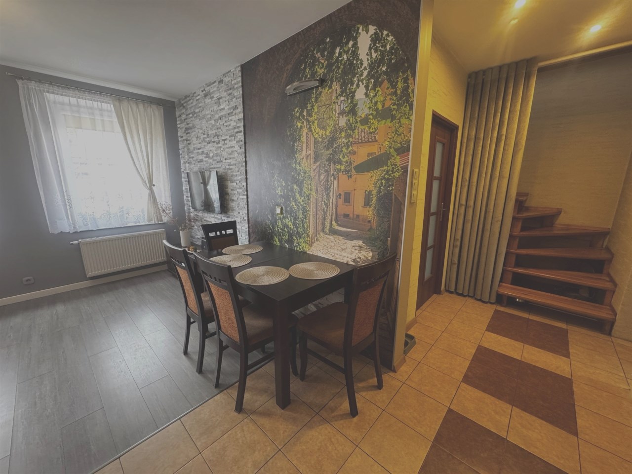 | Podłogi pokoi | panele, płytki |