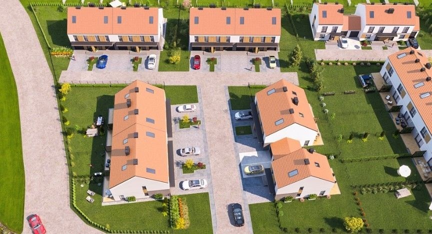 Wysoka jakość materiałów i nowoczesne rozwiązania ekologiczne. Niezależna pompa ciepła w każdym domu, możliwość zamontowania fotowoltaiki, rekuperacji lub pompy ciepła z funkcją chłodzenia.