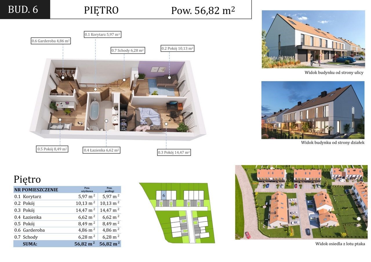 -na piętrze- 3 pokoje (o pow. 14,47 m.kw,10,13 m.kw, 8,49 m.kw), korytarz o pow. 5,97 m.kw, łazienka o pow. 6,62 m.kw oraz garderoba o pow. 4,86 m.kw.