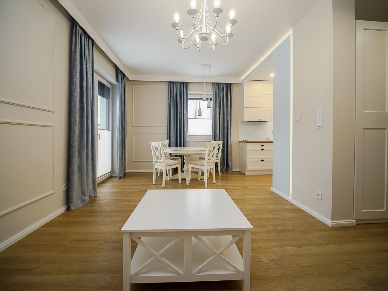 na podłogach panele winylowe oraz płytki,