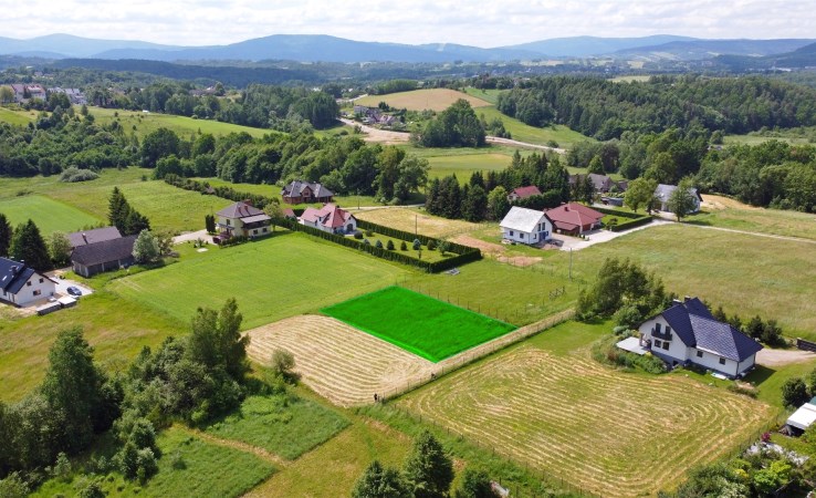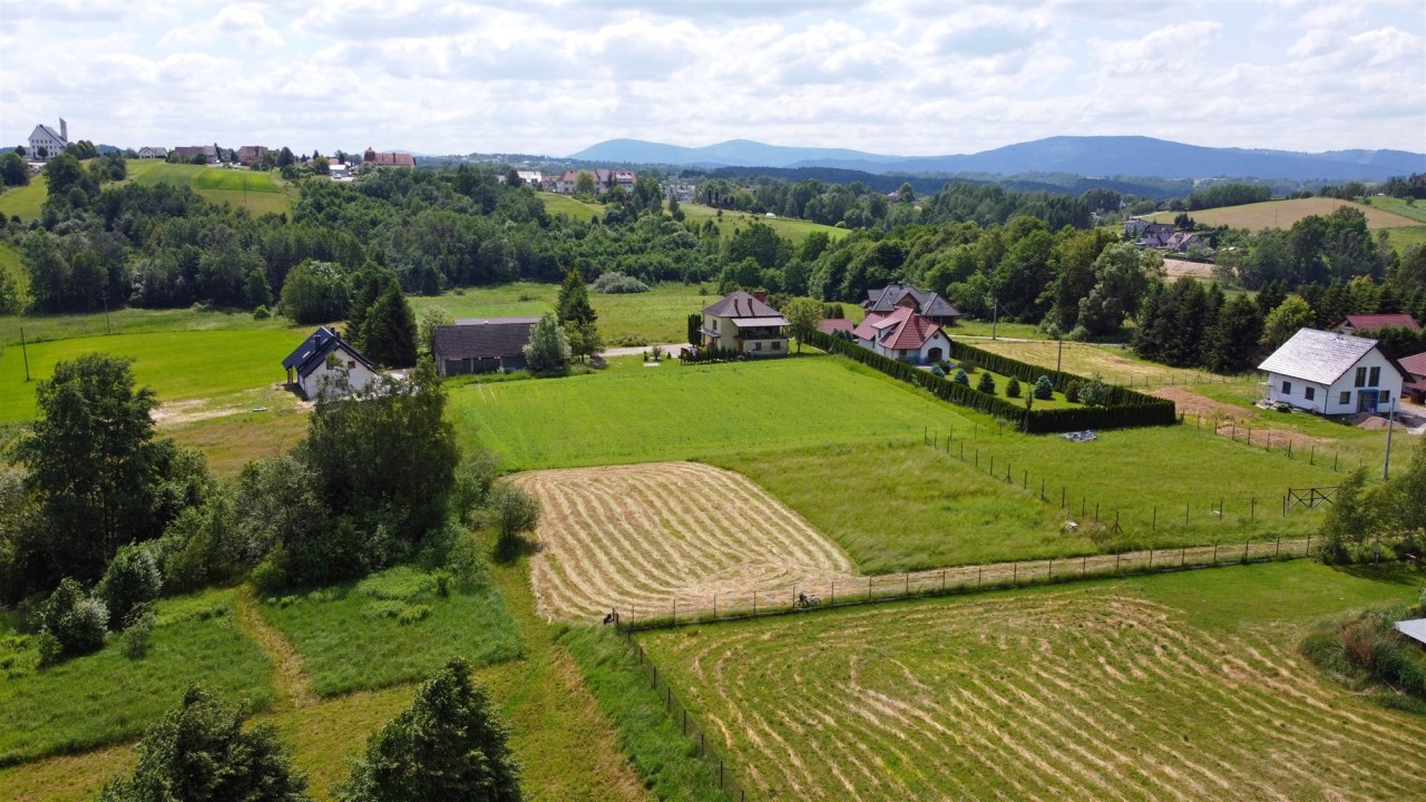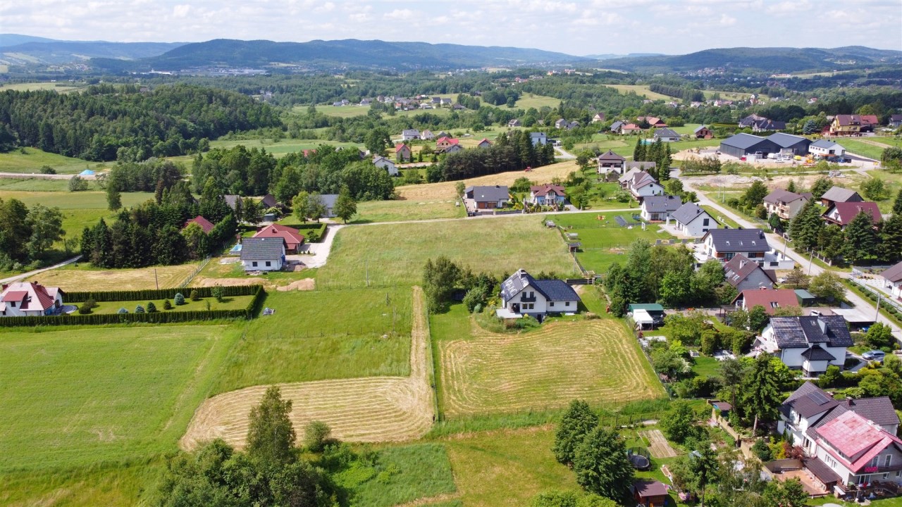 Działka budowlana 1197 m² – Zawada, gm. Myślenice – media na działce, teren płaski, ogrodzona