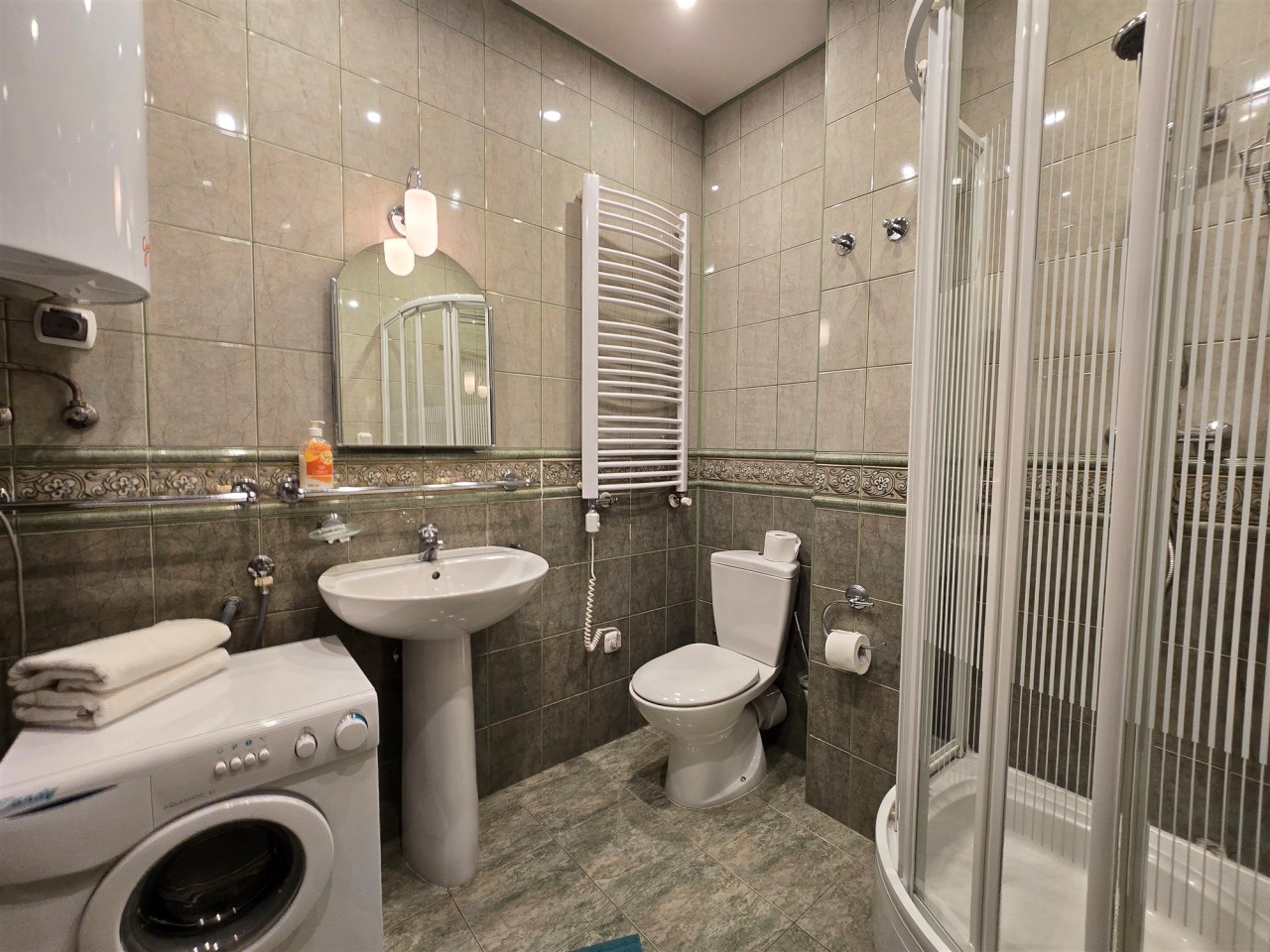 - kuchnia z lodówką, zmywarką i meblami w zabudowie, oraz przedpokój i łazienka z prysznicem i pralką.