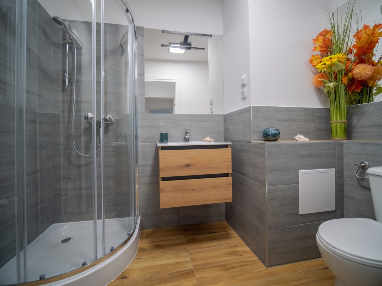 Wyposażenie łazienki | WC, umywalka, natrysk, lustro, kabina prysznicowa |