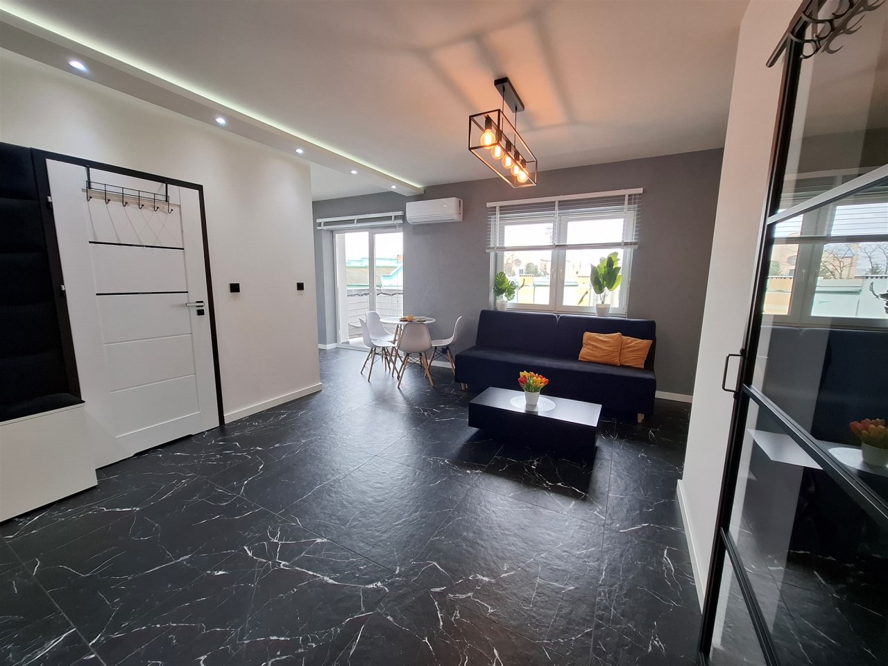 BESTATE Nieruchomości Pabianice oferuje do sprzedaży apartament o powierzchni 42 m.kw usytuowany na drugim piętrze w Pabianicach na osiedlu Bugaj. Apartament z windą. Apartament wykończony na wysoki poziom, ogrzewanie podłogowe - miejskie, posadzki wykończone płytkami gresowymi. Na ścianach gładź gipsowa, tynk ozdobny oraz cegła. Aneks kuchenny wyposażony w meble na wymiar, zmywarkę, zlewozmywak, płytę elektryczną, piekarnik elektryczny, okap, lodówko-zamrażarkę. W salonie duża szafa z lustrzanymi drzwiami. Sypialnia z dekoracyjnym oświetleniem. Przestronna łazienka wykończona glazurą i terakotą, wyposażona w kabinę prysznicową, umywalkę, pralkę oraz wc. Mieszkanie dobrze doświetlone, nasłonecznione. Mieszkanie posiada klimatyzację. Okna pcv, balkon.