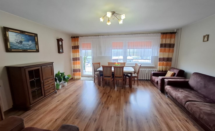 Mieszkanie składa się z trzech pokoi o powierzchni ok.25 m.kw.,ok.12 m.kw i ok.7 m.kw.,kuchni o pow. ok.7 m.kw, łazienki o pow. ok. 2 m.kw., wc o pow. ok.1 m.kw. oraz przedpokoju o pow. ok.6,50 m.kw. Mieszkanie do odświeżenia, wymienione instalacje, drzwi antywłamaniowe. Kuchnia i łazienka w pełni wyposażone. W kuchni znajdują się meble, zmywarka, kuchenka gazowa, piekarnik elektryczny, lodówko-zamrażarka. W łazience wanna, szafki i pralka. W pokojach kanapa, stół z krzesłami, regały, szafka RTV oraz szafa typu komandor. W przedpokoju druga szafa typu komandor. W pokojach na podłodze położone są panele, na ścianach gładzie, tynk strukturalny oraz tapeta, w przedpokoju na podłodze płytki, na ścianach stiuk. W kuchni, łazience i wc na podłodze płytki, na ścianach glazura i gładź. Mieszkanie dwustronne w pełni rozkładowe, ciepłe, okna pcv z ekspozycją na wschód i zachód, duży balkon typu loggia. Do mieszkania przynależą dwie komórki lokatorskie o łącznej pow. ok. 8 m.kw (jedna za niewielką dopłatą). Blok z wielkiej płyty, wejście zabezpieczone domofonem. Centralne ogrzewanie (podzielniki) i ciepła woda miejskie. Bardzo dobra lokalizacja - w okolicy szkoła, przedszkole, sklepy, markety, rynek, krańcówka autobusów. Komunikacja miejska - autobus, tramwaj.