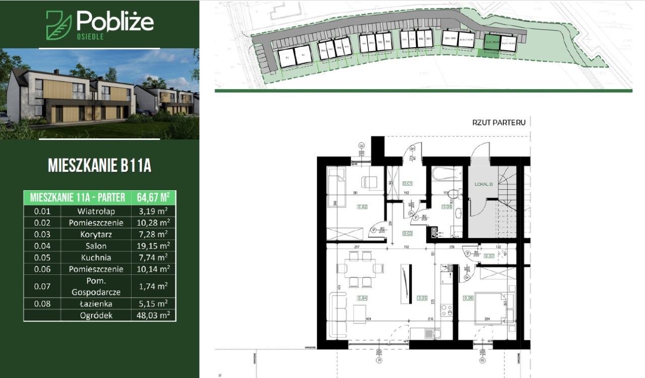 Osiedle Pobliże to kameralna, znakomicie zaprojektowana inwestycja, która łączy wygodę życia miejskiego z prywatnością i bliskością natury. To idealne miejsce dla rodzin, par oraz jako inwestycja.