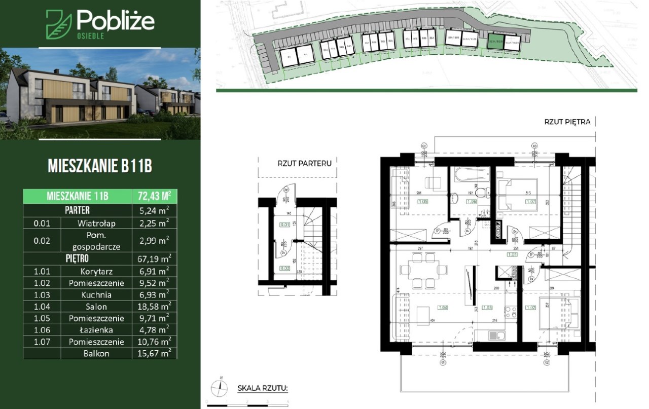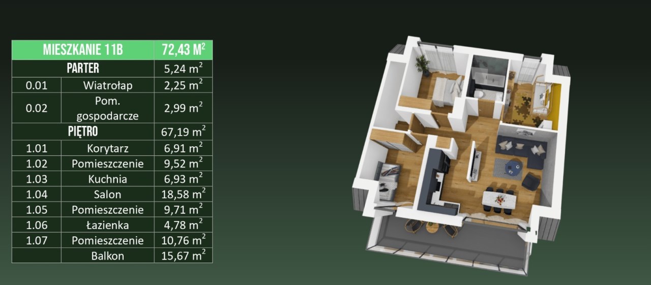 ???? Mieszkanie na 1. piętrze – 72,43 m²