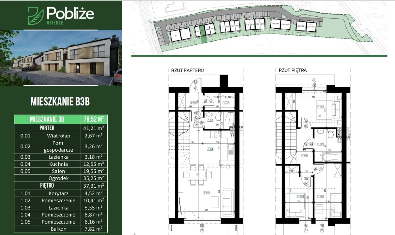Na sprzedaż dwupoziomowe mieszkanie w stanie deweloperskim o powierzchni 78,70 m² położone na nowoczesnym, kameralnym osiedlu Pobliże przy ul. Wanatowicza w Mielcu.