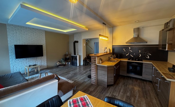 | Wyposażenie kuchni | lodówko/zamrażarka, zlewozmywak z baterią, meble kuchenne na wymiar, kuchenka gazowa |