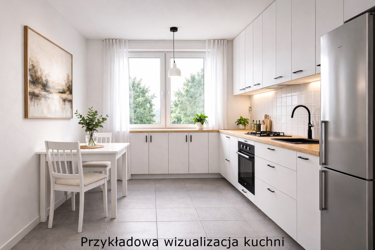 | Wyposażenie kuchni | zlewozmywak z baterią, płyta gazowa, piekarnik, lodówko-zamrażarka, |