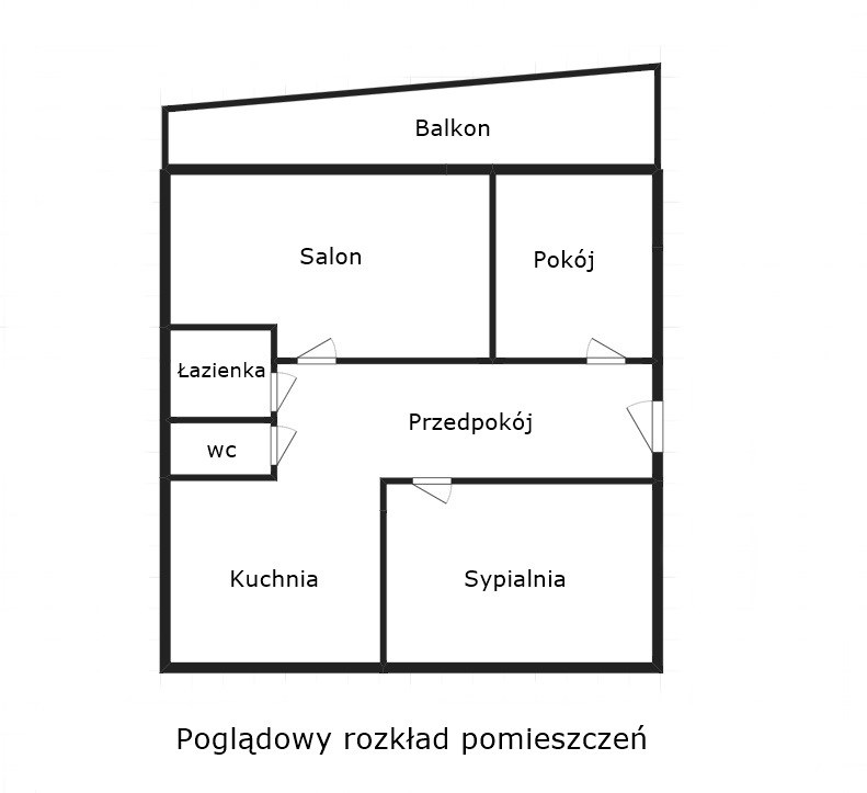 Nieruchomość składa się z salonu z wyjściem na balkon, o powierzchni około 15,7 m. kw, dwóch sypialni o pow. ok. 11 m.kw + 10 m.kw, oddzielnej kuchni o pow. ok. 7,5 m.kw, łazienki z wanną o pow. ok. 2,5 m. kw, osobnego wc o pow. ok. 1 m. kw oraz przedpokoju o pow. ok. 4,5 m.kw. Mieszkanie przeznaczone do generalnego remontu.