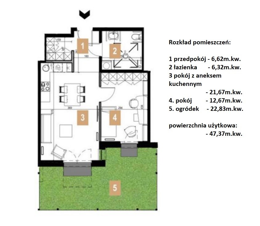| Powierzchnia użytkowa [m2] | 47,37 m² |