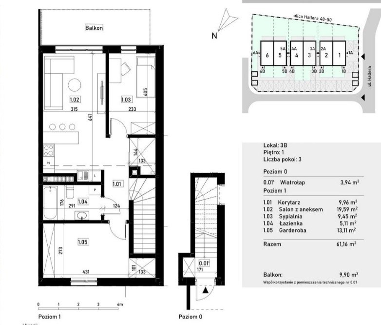 | Powierzchnia | 61,16 m² |
