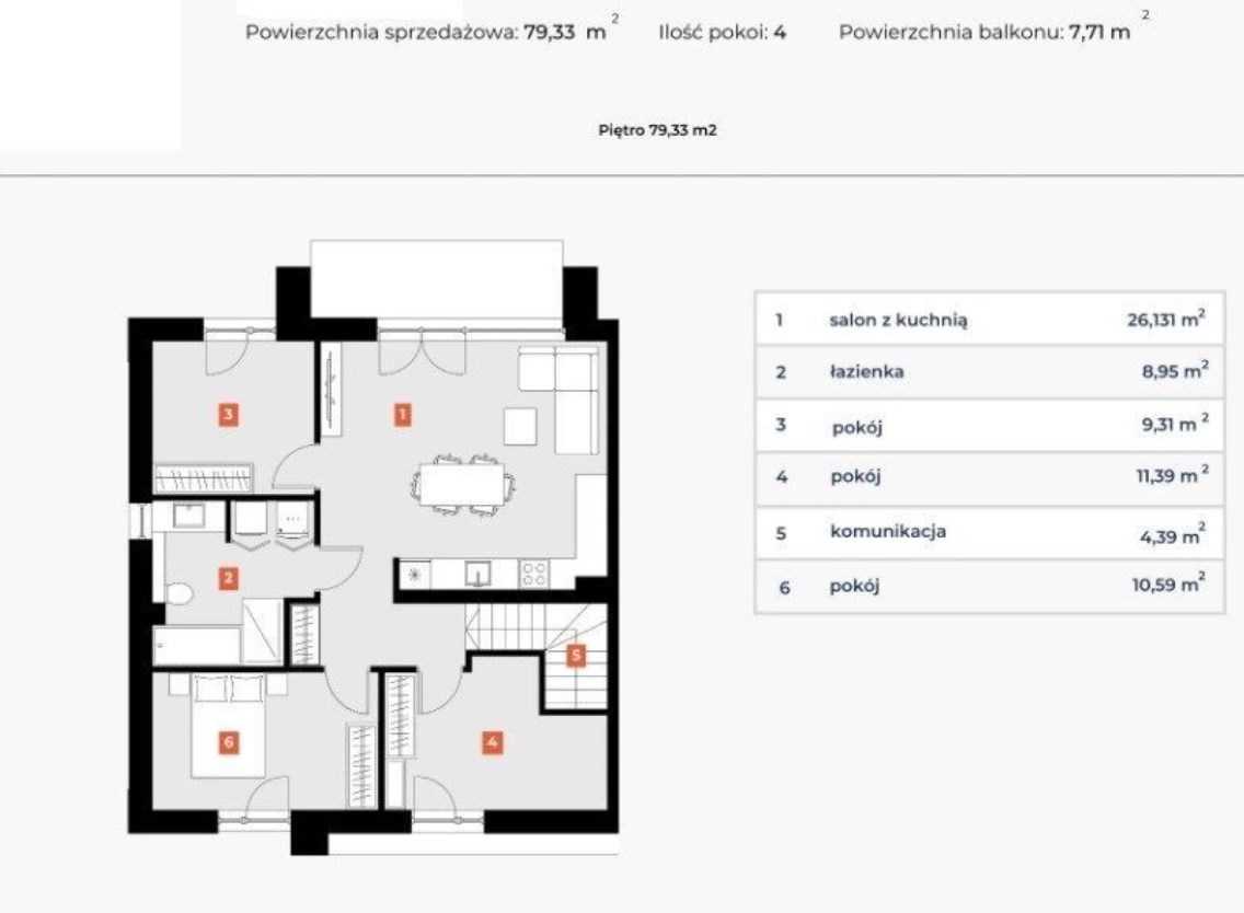 | Powierzchnia użytkowa [m2] | 79,33 m² |