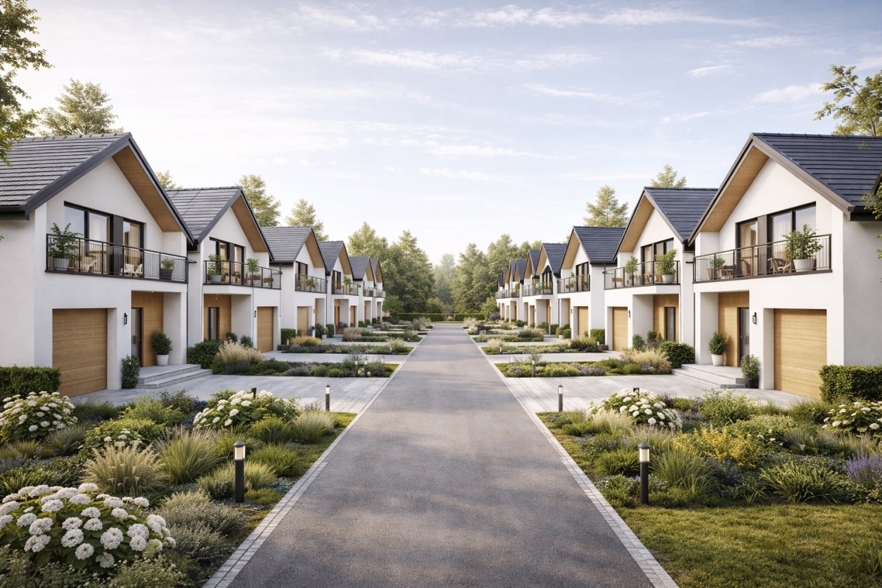 Bestate Nieruchomości oferuje do sprzedaży domy w zabudowie bliźniaczej oraz domy szeregowe na staranie zaprojektowanym osiedlu, na którym każdy budynek zbudowany będzie z wysokiej jakości materiałów, wyposażony w pompę ciepła, siedmiokomorowe, trzyszybowe okna, centralną biologiczną oczyszczalnię. Dodatkowo przygotowana instalacja pod fotowoltaikę, rekuperacja, światłowód.