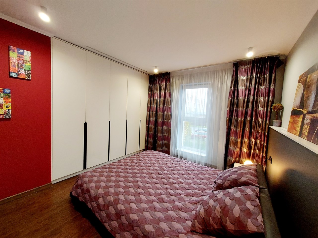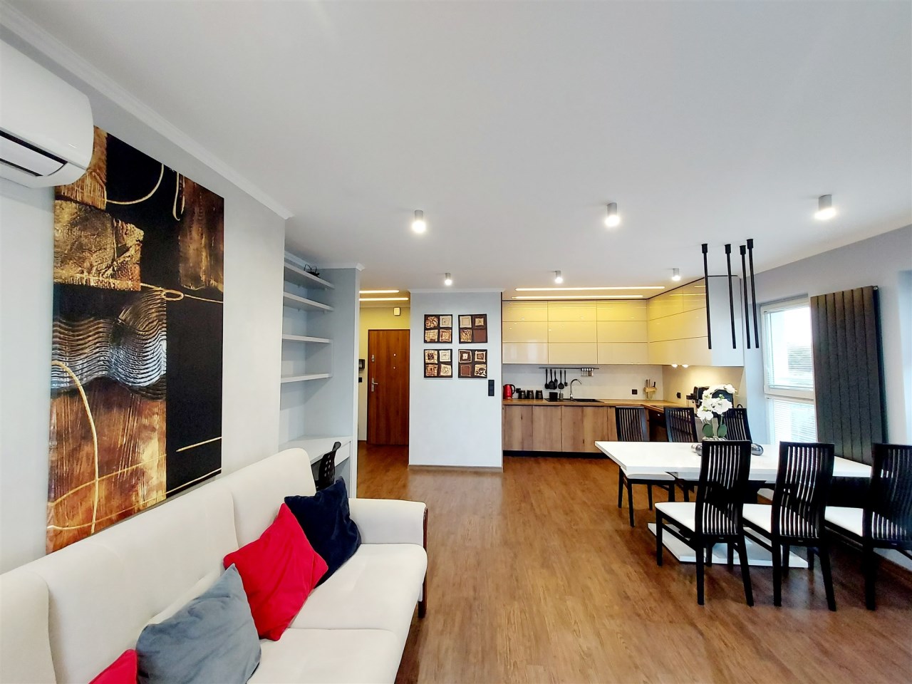 Nieruchomość składa się z salonu z aneksem kuchennym oraz z wyjściem na balkon, sypialni, łazienki oraz przedpokoju. W pokojach zamontowana klimatyzacja. W sypialni i w przedpokoju pojemne szafy w zabudowie. Kuchnia w zabudowie wraz ze sprzętem agd (płyta indukcyjna, piekarnik, okap, lodówko-zamrażarka).