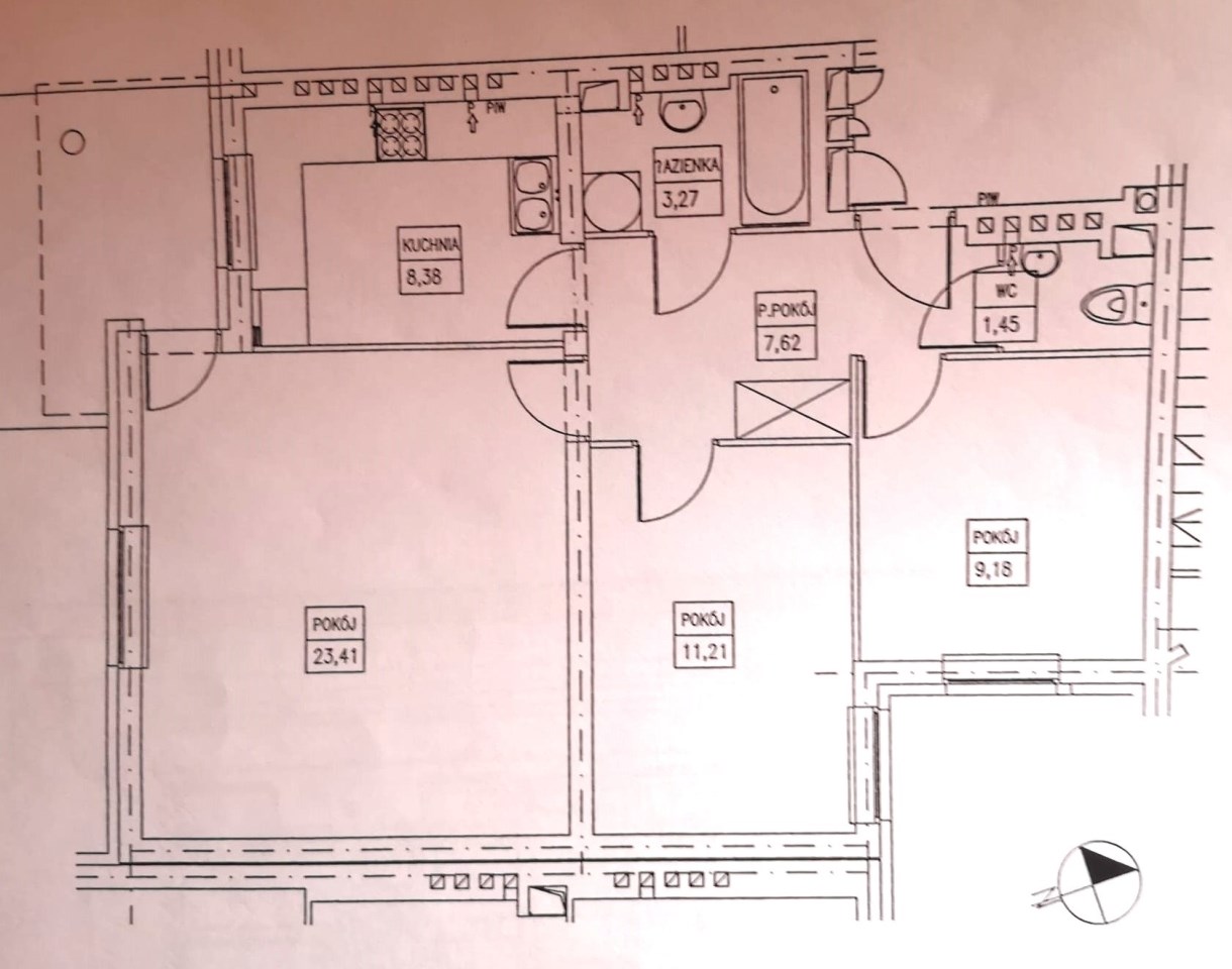 | Powierzchnia pokoi | 23,41+11,21+9,18 m2 |