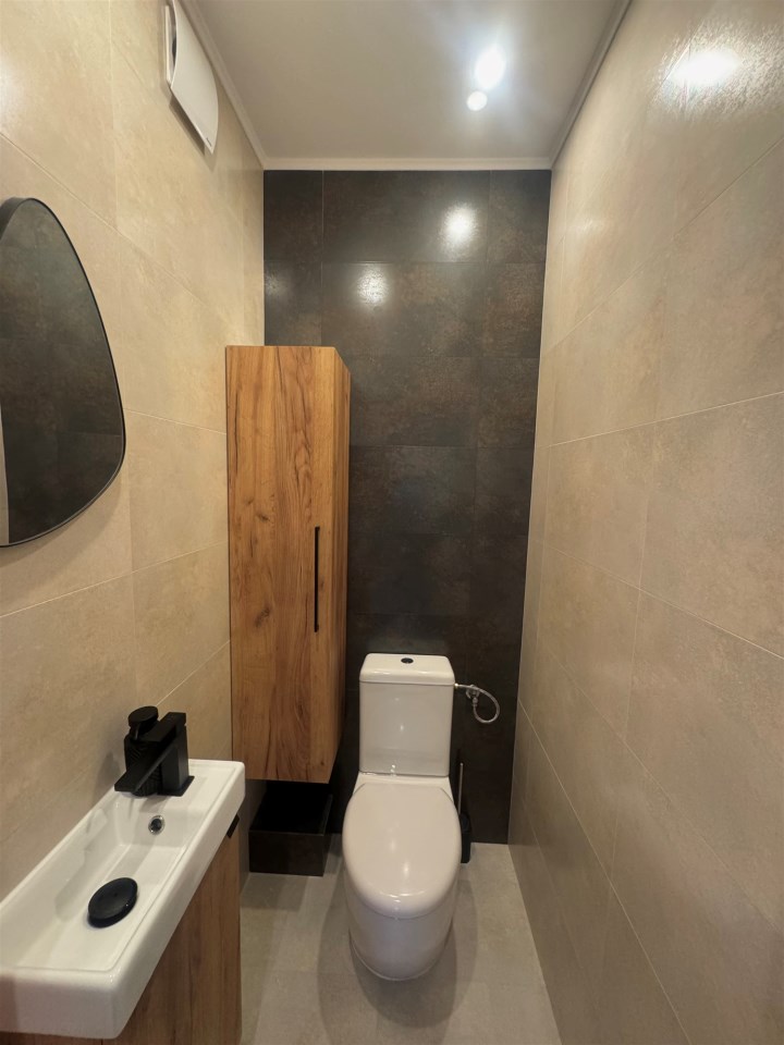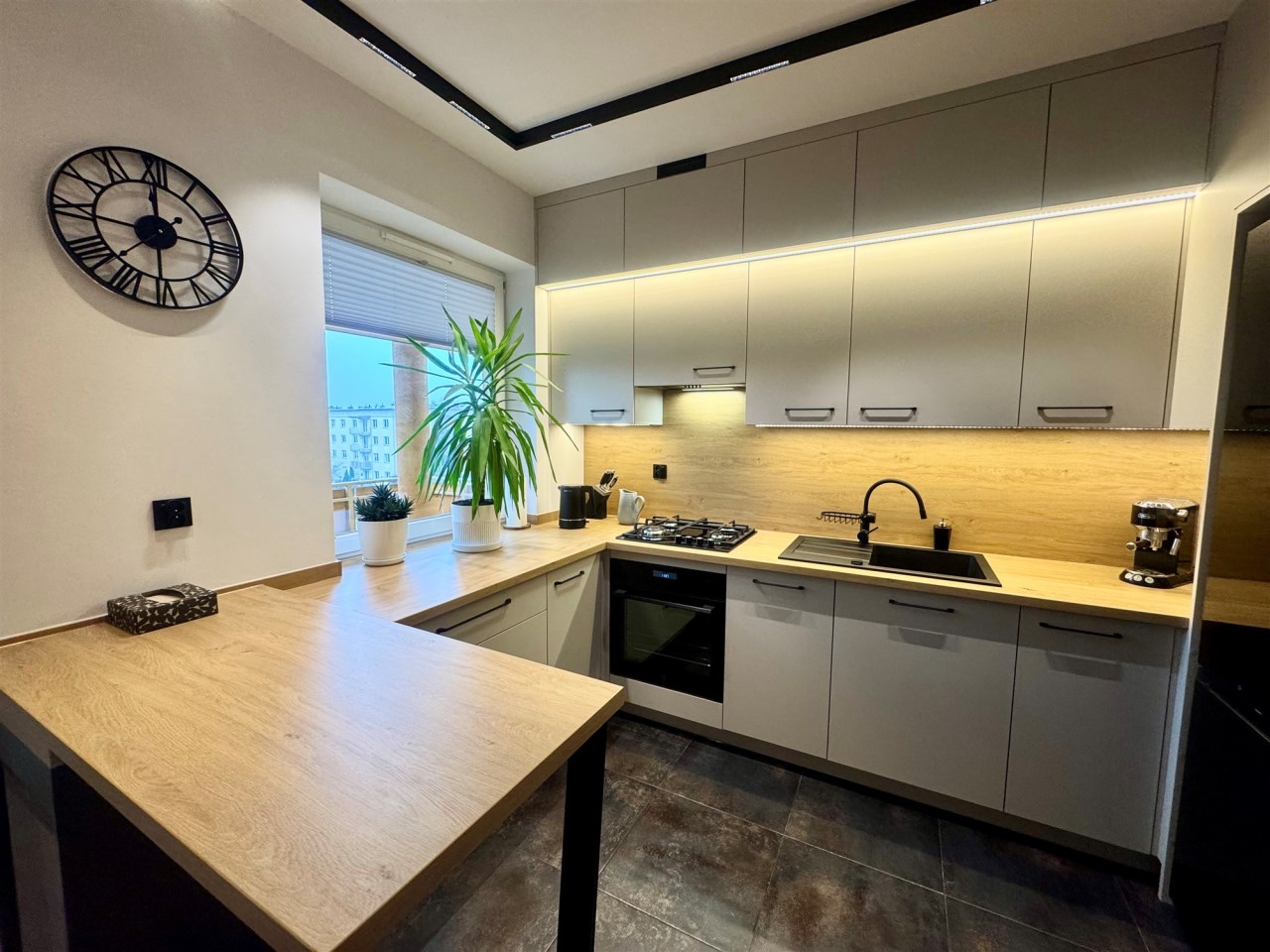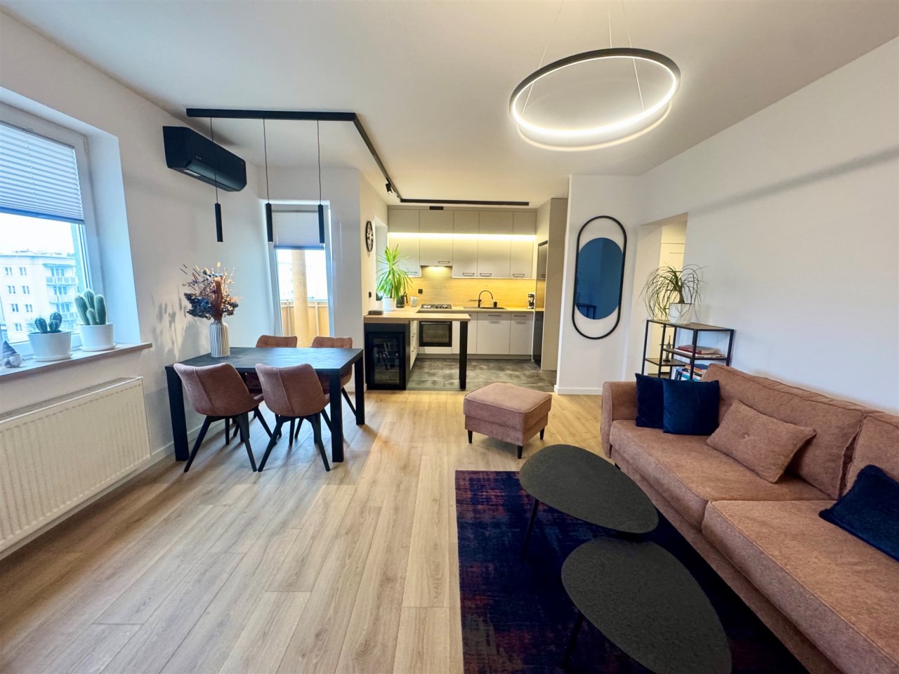 Mieszkanie po generalnym remoncie. Ściany wykończone gładziami, na podłogach trwałe, laminowane, wodoodporne panele typu Quick-Step. W kuchni włoski gres Imda, meble na wymiar wykończone płytą odporną na użytkowanie- lakierowany mat Egger, oraz sprzęt agd: płyta gazowa, piekarnik, zmywarka, lodówkę oraz lodówkę do wina. Wypoczynek w salonie pokryty grubą, plamoodporną tkaniną Diosa. Łazienka wykończona glazurą i terakotą. Drzwi wejściowe firmy Porta antywłamaniowe, w pokojach drzwi marki DRE bezprzylgowe. Energooszczędna i cicha klimatyzacja Rotenso, a także oświetlenie trzystrefowe Azzardo z regulacją barwy i natężenia światła.