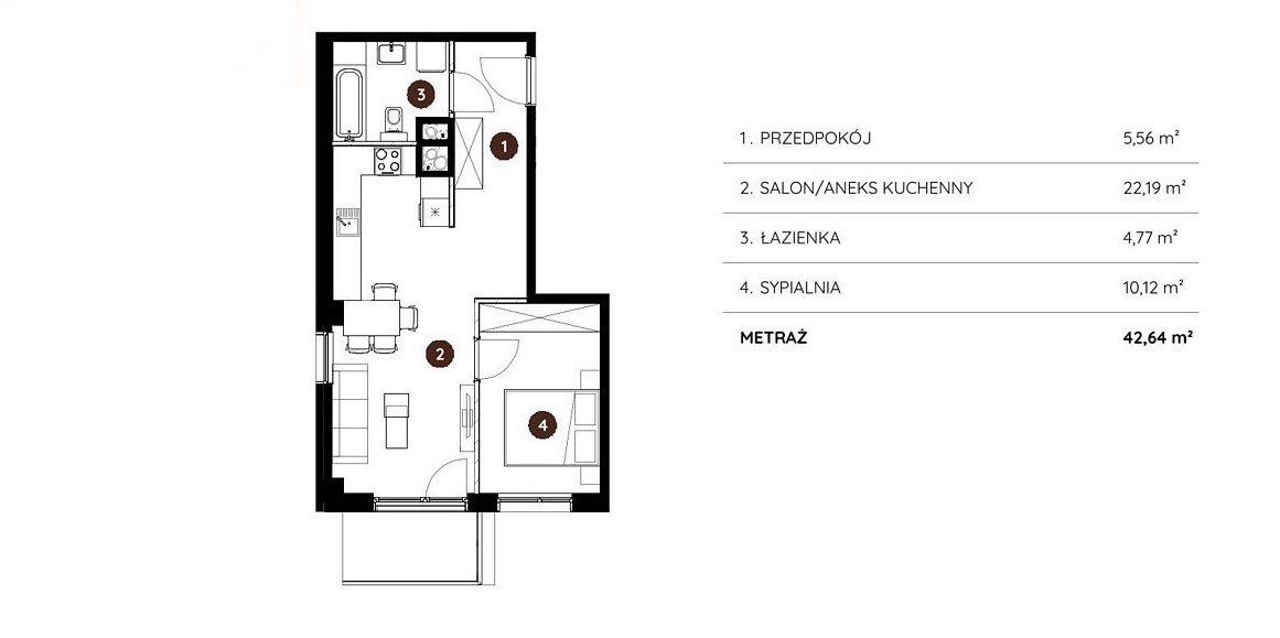 | Powierzchnia użytkowa [m2] | 42,64 m² |