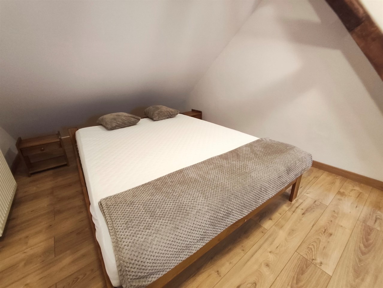 Drugi poziom to przytulna sypialnia, która gwarantuje komfort i prywatność. Znajduje się tu obszerna szafa, oferująca dużo miejsca do przechowywania.