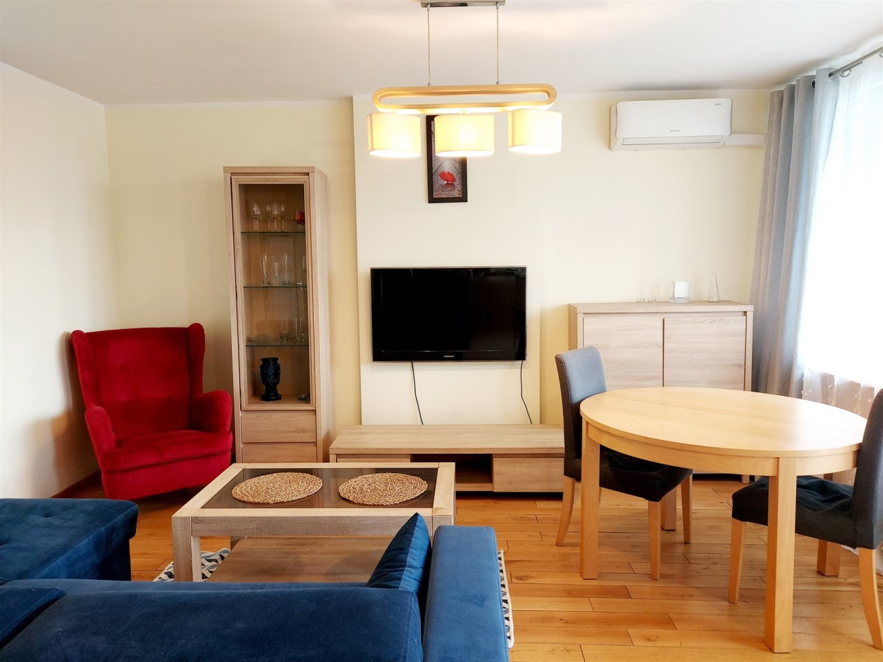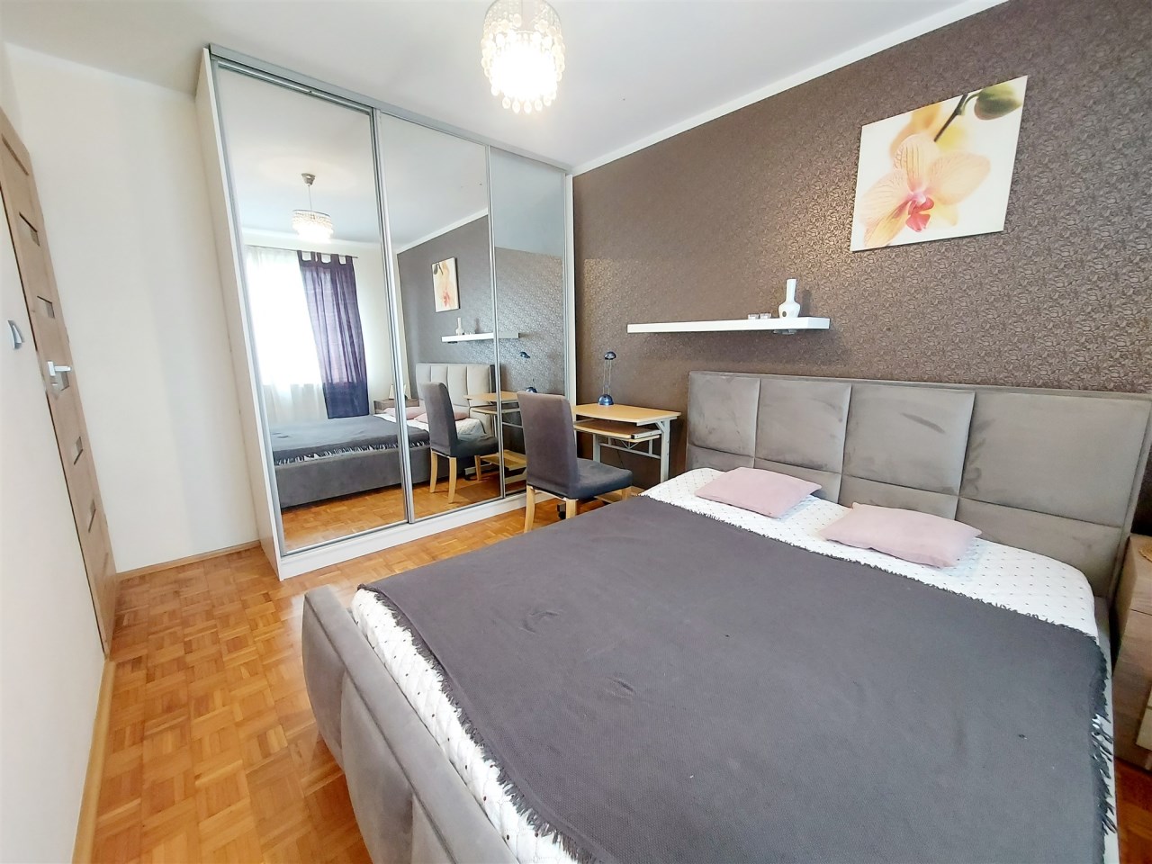 Nieruchomość składa się z salon z kuchnią w aneksie, 3 sypialni, łazienki z wanną, wc oraz otwartego przedpokoju. Kuchnia z meblami i sprzętem agd (lodówko-zamrażarka, zmywarka, kuchenka gazowa, piekarnik elektryczny, zlewozmywak, okap). Nieruchomość umeblowana. Ogrzewanie miejskie. Okna plastikowe. Dodatkowo balkon. Istnieje możliwość korzystania z piwnicy.