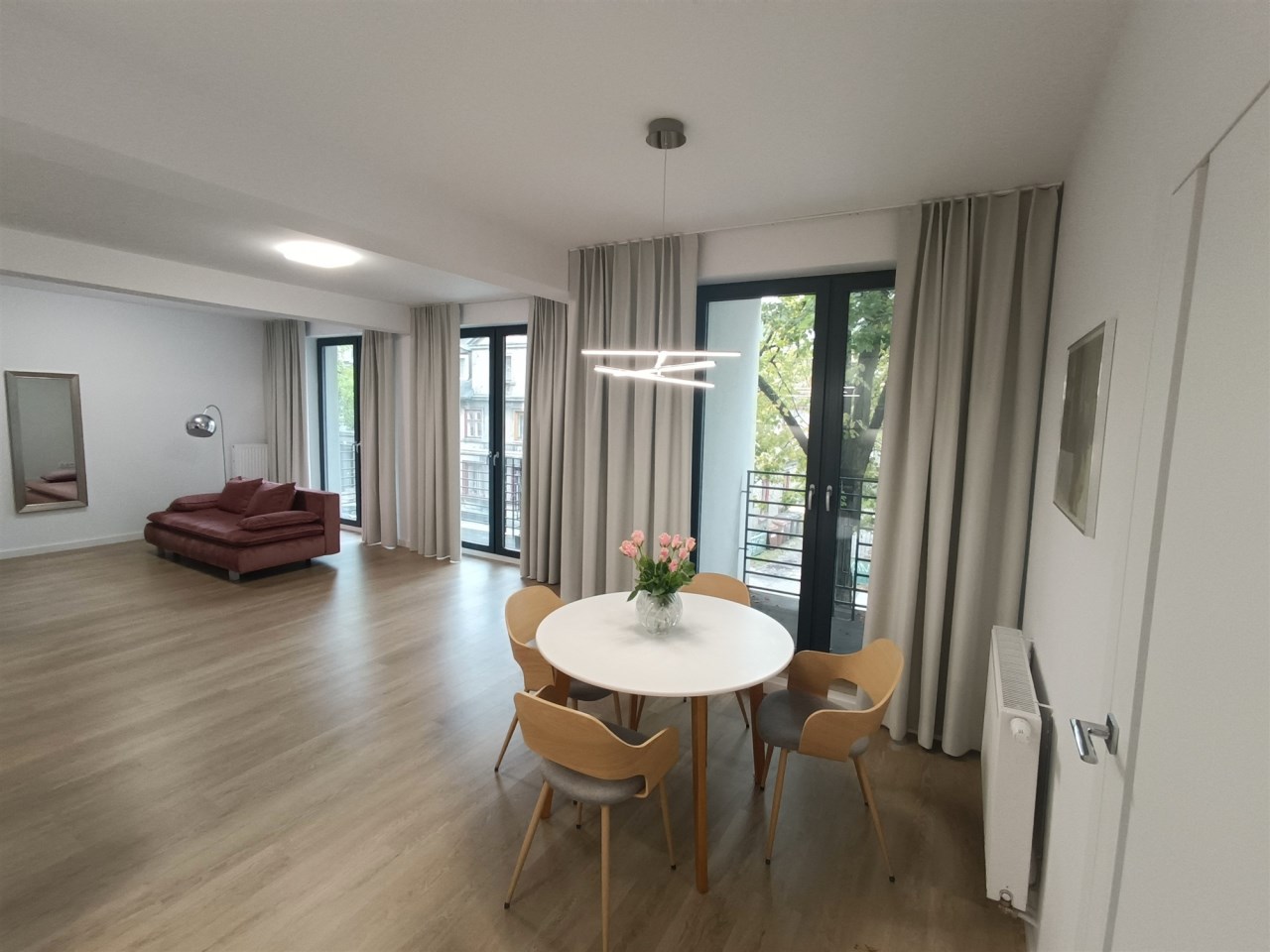BESTATE Nieruchomości Pabianice oferuje do wynajmu nowoczesny dwupokojowy apartament o powierzchni użytkowej 61,74 m.kw usytuowany na pierwszym piętrze (winda) w budynku czteropiętrowym w Centrum Pabianic. Apartament składa się z przestronnego salonu wraz z jadalnią i aneksem kuchennym o pow. ok.38 m.kw, sypialni o pow. ok.16 m.kw, łazienki z wc o pow. ok.5 m.kw. oraz przedpokoju o pow. ok. 3 m.kw, w pełni umeblowany, z dwoma loggiami. Do apartamentu przynależy komórka lokatorska o pow. ok.2,5 m.kw. (na tym samym piętrze), miejsce postojowe w garażu, dodatkowo w budynku patio.