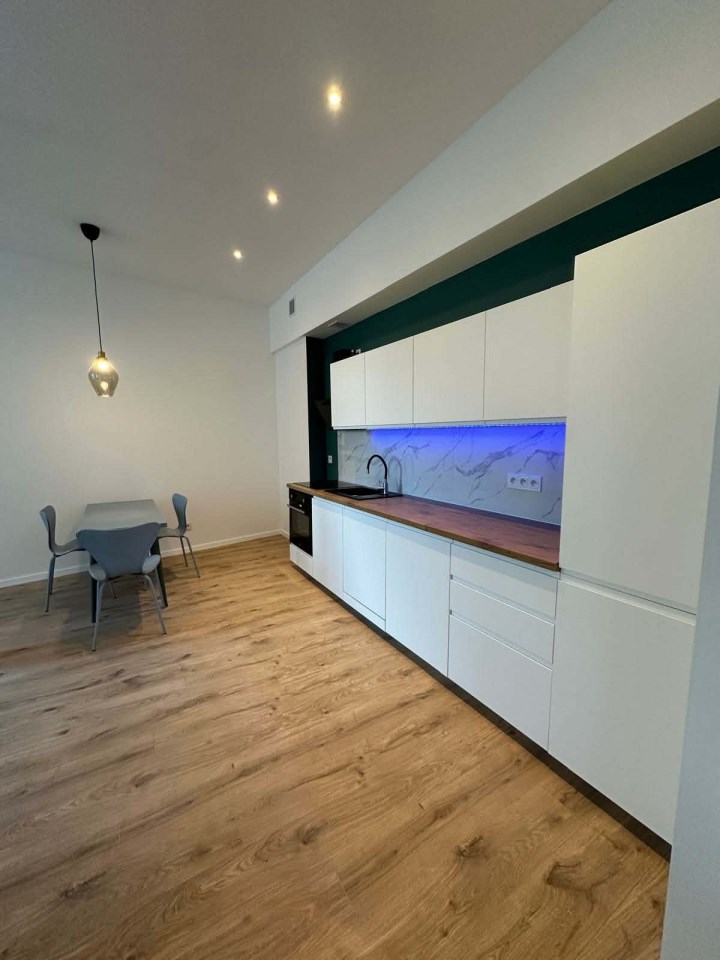 Mieszkanie przeszło generalny remont z wykorzystaniem wysokiej jakości materiałów. Jasne, harmonijne wnętrza łączą nowoczesny design z niepowtarzalnym charakterem zabytkowej kamienicy, tworząc przestrzeń klasy premium.